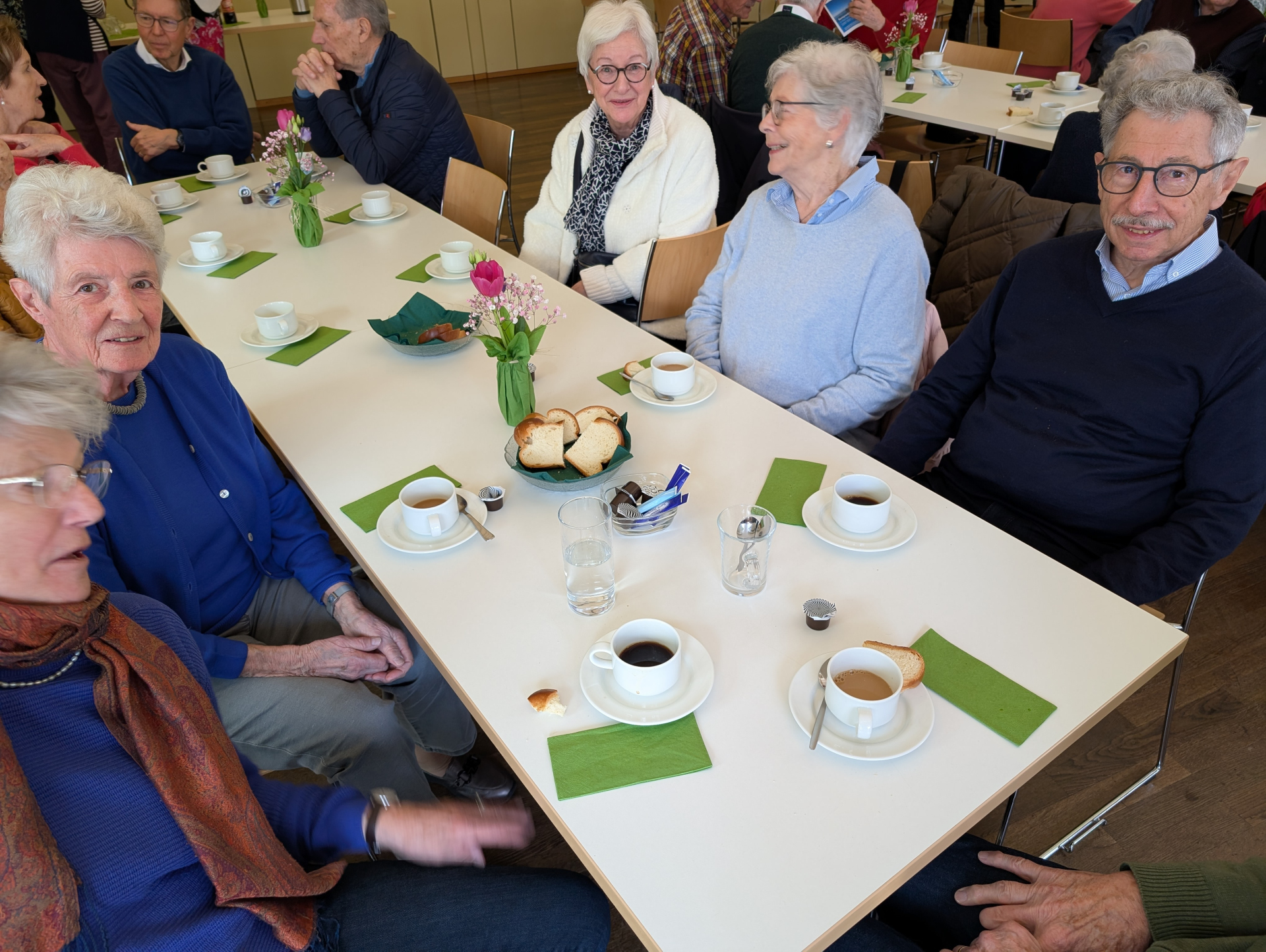 Ein Team von ca. 20 Freiwilligen sorgen, mit den Sigristen und der Diakonie dafür, dass der Kaffee gekocht und die Tische gedeckt sind und die Gäste sich willkommen fühlen.
